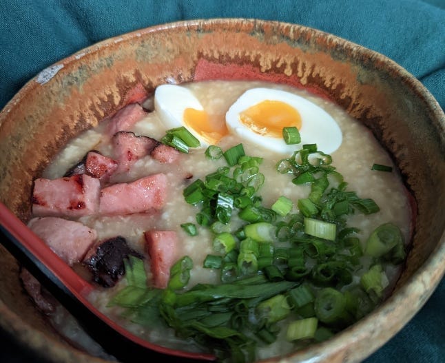 To ensure that this period of illness doesn’t undo my good work, I’ve reduced my calorie intake while sick. A big bowl of congee (rice porridge) in the morning, tons of tea throughout the day, and a lovely soup for dinner are just what the doctor ordered. Learning to eat intuitively is hard. What I want right now is about fifteen cheese sandwiches and a chocolate cake. Learning to accept these impulses without judgment, and not give into them, is a giant part of learning to give oneself good care.