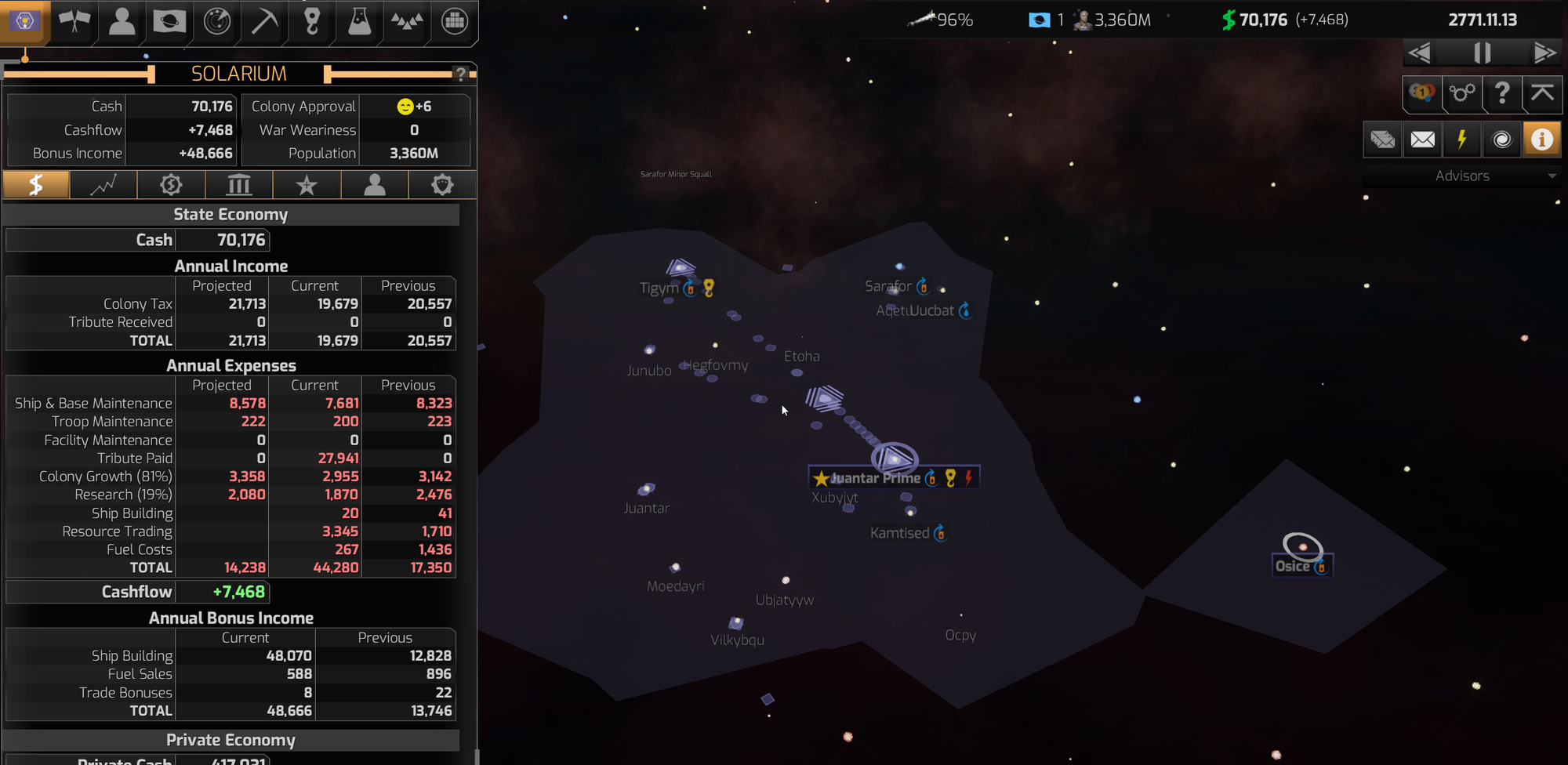 - Fix: It's sorta self-explanatory--provide more story! Each race should have lots of story content that pops up in small chunks. It could still be automated out for those players who don't want to deal with it, but for relatively low-energy, the game could be spiced up a lot. Give us details of what happens on the away missions of explorers; tell us what happens to the psychologies of crews on deep-space missions; provide details about the intricate political maneuvering planet-side; tell us what the spy escaping capture had to go through! While the economics is simulated, the stuff that actually makes a game engaging has been all abstracted out.