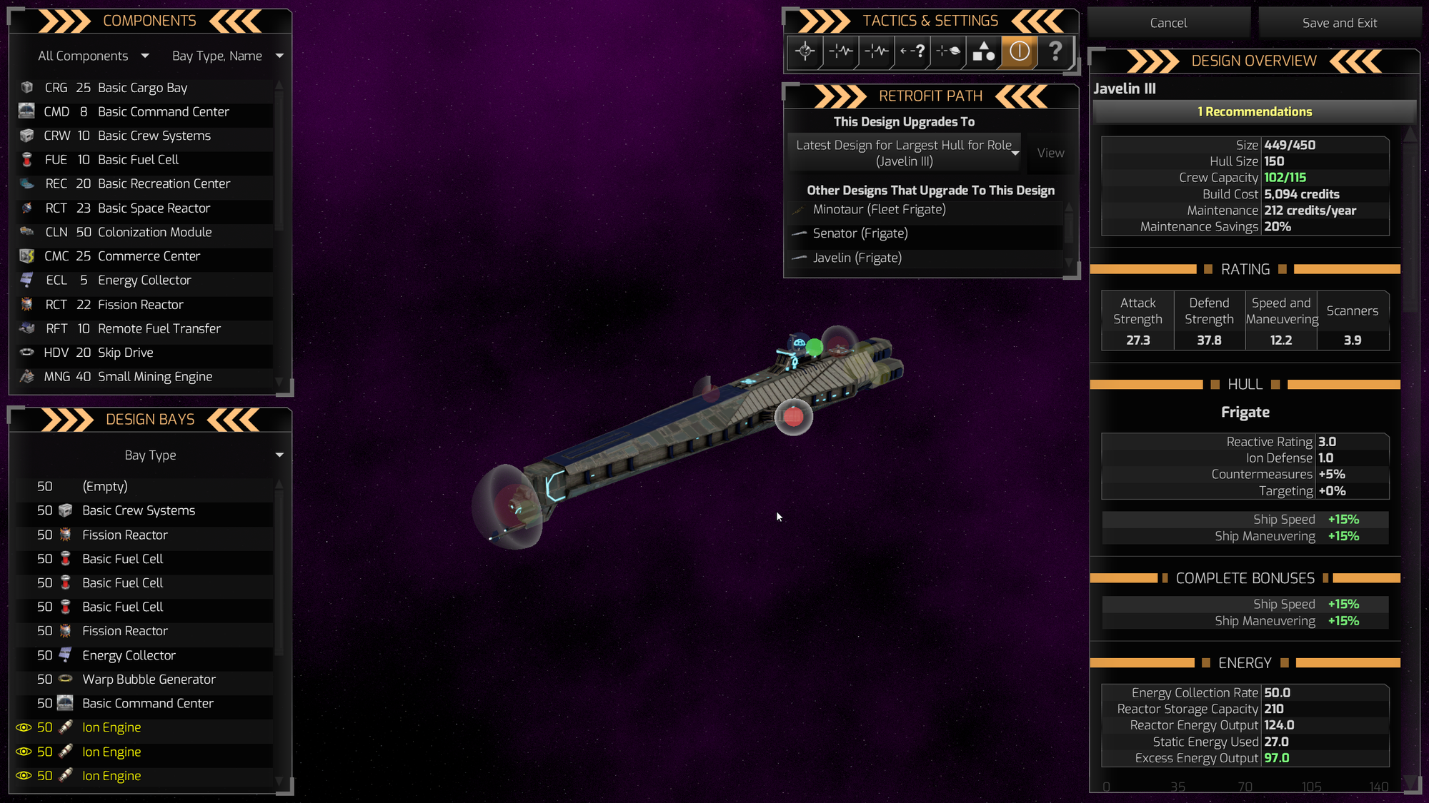 This, incidentally, was one of my biggest beefs with Nebulous: Fleet Command. It made no sense to me that I should have to real-time micro-manage every aspect of the damn ship during combat. Realistically, a trained crew should be able to handle most aspects of combat without being constantly told what to do!