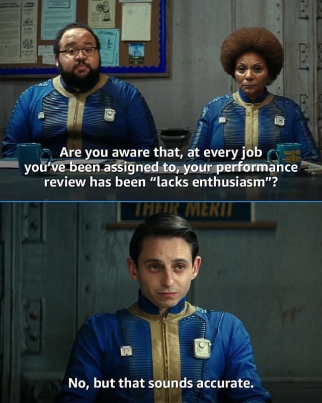 Fallout is a television series for the modern Millennial: stressed, exhausted, and still saying "Okey-dokey" as we try to keep a roof over our heads.