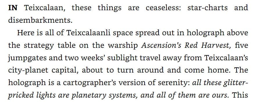 Now, let’s take a stab at the two openings of A Memory Called Empire. The prelude, and the actual first chapter.