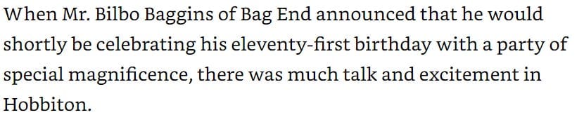 Actually, because there are extensive quotes at the beginning of each chapter, which themselves serve as story-building and world-building material, this selection is a bit artificial. But, I wanted to focus in on the meat.
