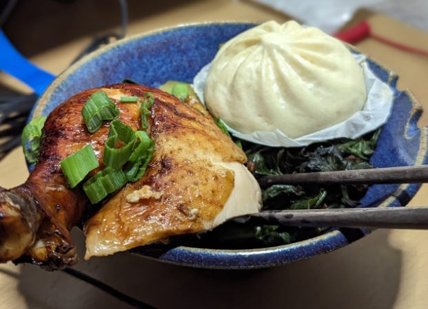 Saturday also saw the eve of Lunar New Year! Do you celebrate? If so, tell me what your traditions are! I cooked a 5-spice and soy chicken, and sides of black bean Chinese broccoli, hoisin bok choy, rice, and a pork bun.