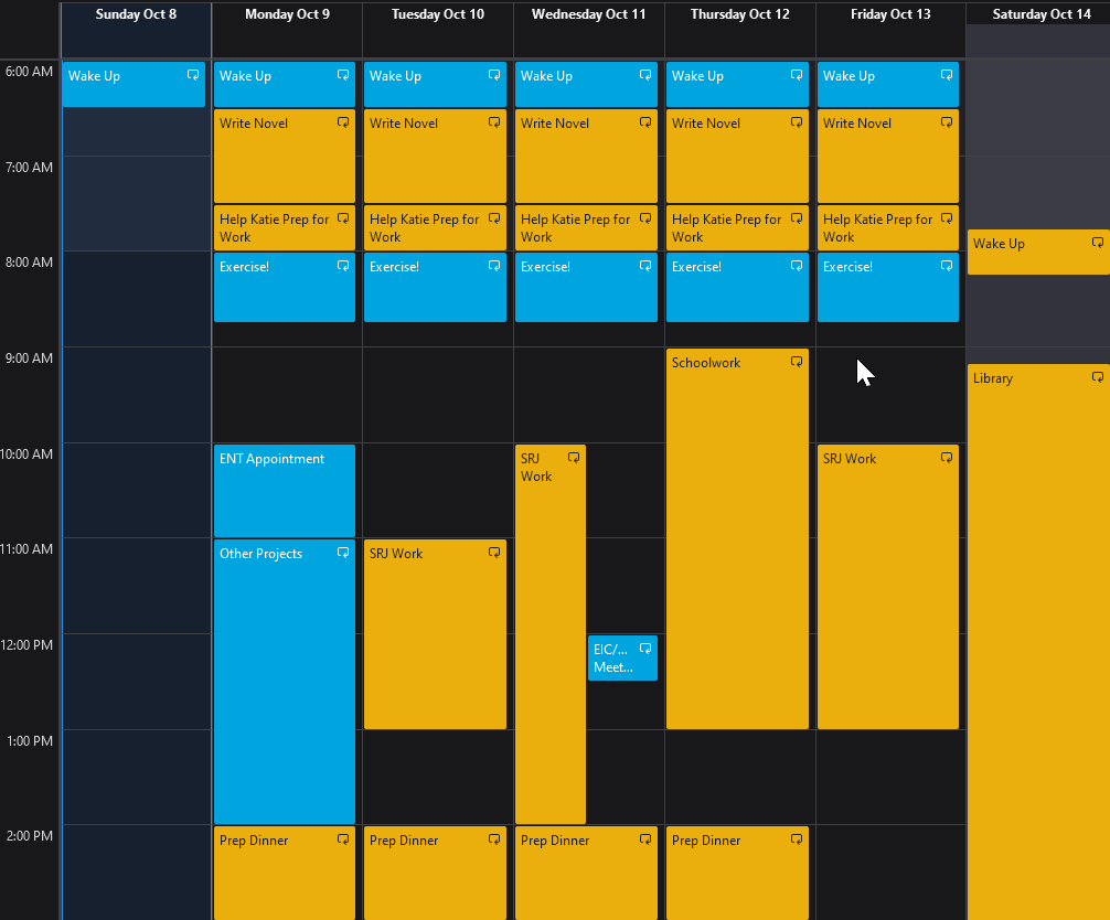 Along with this, I'm settling into a regular morning writing routine, and I'm so-so happy that I moved to just one day a week at the library. With everything else that I have going on, it's so vital that I have extra time to work on my schoolwork and my other job.